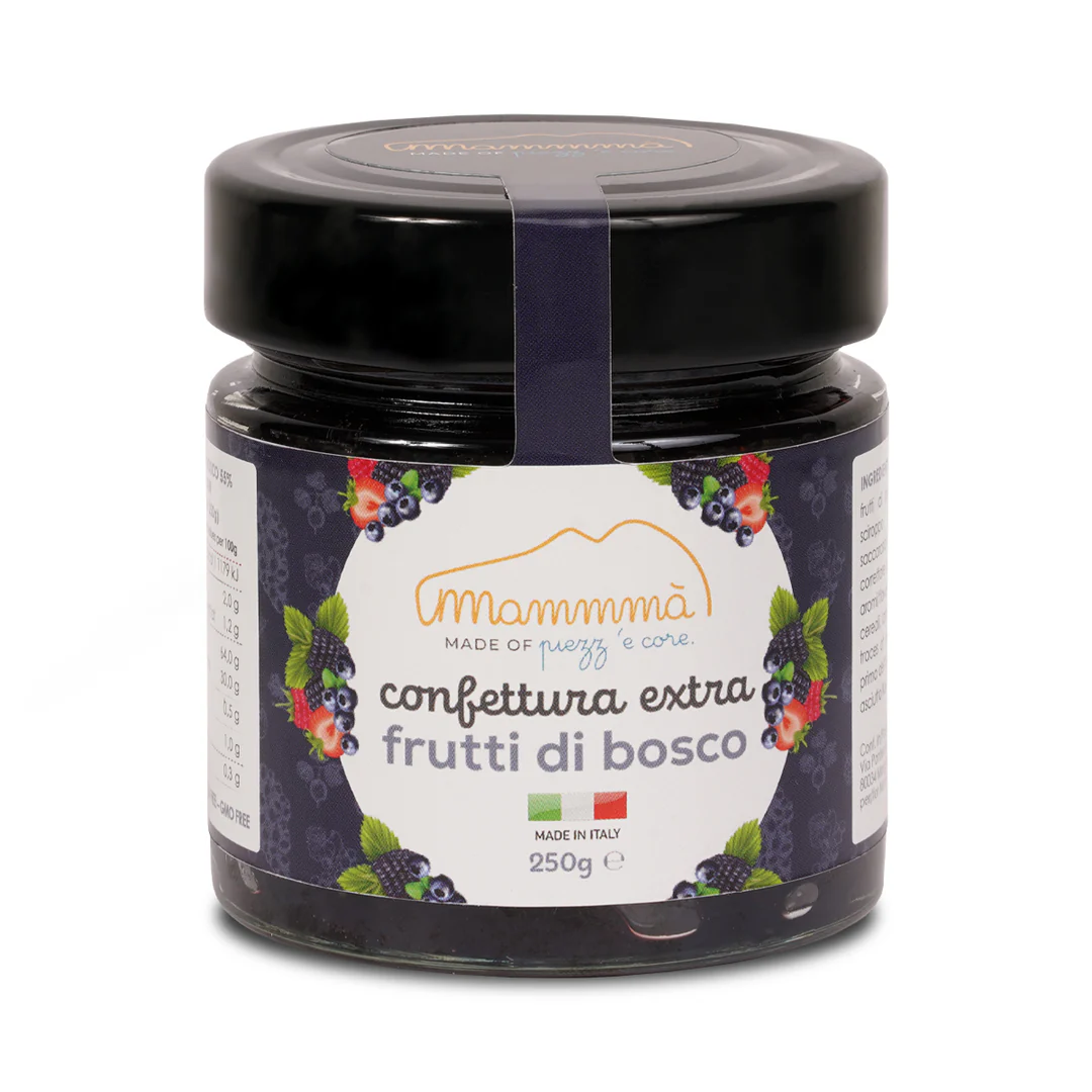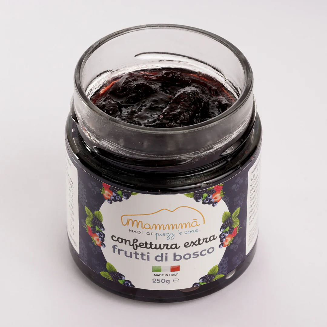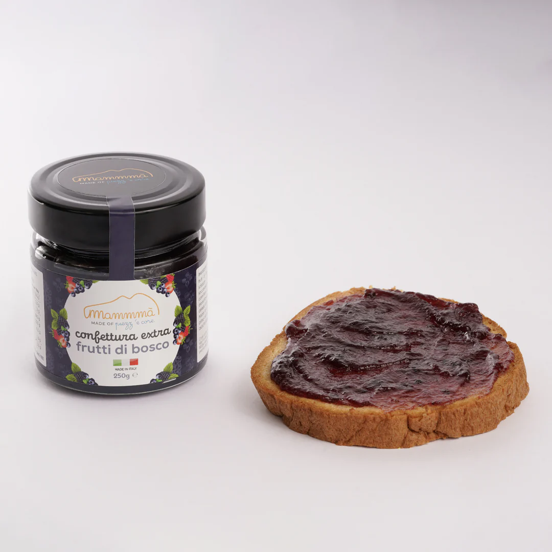 La confettura di Frutti di Bosco di MAMMMÀ è preparata con maestria secondo un’antica ricetta che esalta il sapore naturale dei Frutti di Bosco, rispettando le loro proprietà organolettiche. Il risultato? Una confettura morbida e gustosa, proprio come quella fatta in casa!