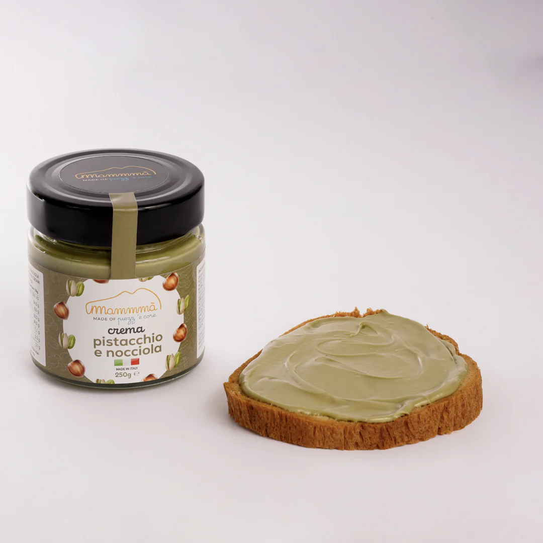 😋 La Crema al Pistacchio e Nocciola di MAMMMÀ è una deliziosa crema spalmabile ideale da spalmare sul Natu Babbà, o per iniziare la giornata con una nota di dolcezza o concedersi una golosa pausa. Spalmala generosamente su una fetta di pane o una fragrante fetta biscottata oppure libera la tua fantasia per usarla come golosa farcitura per torte, biscotti e irresistibili croissant.